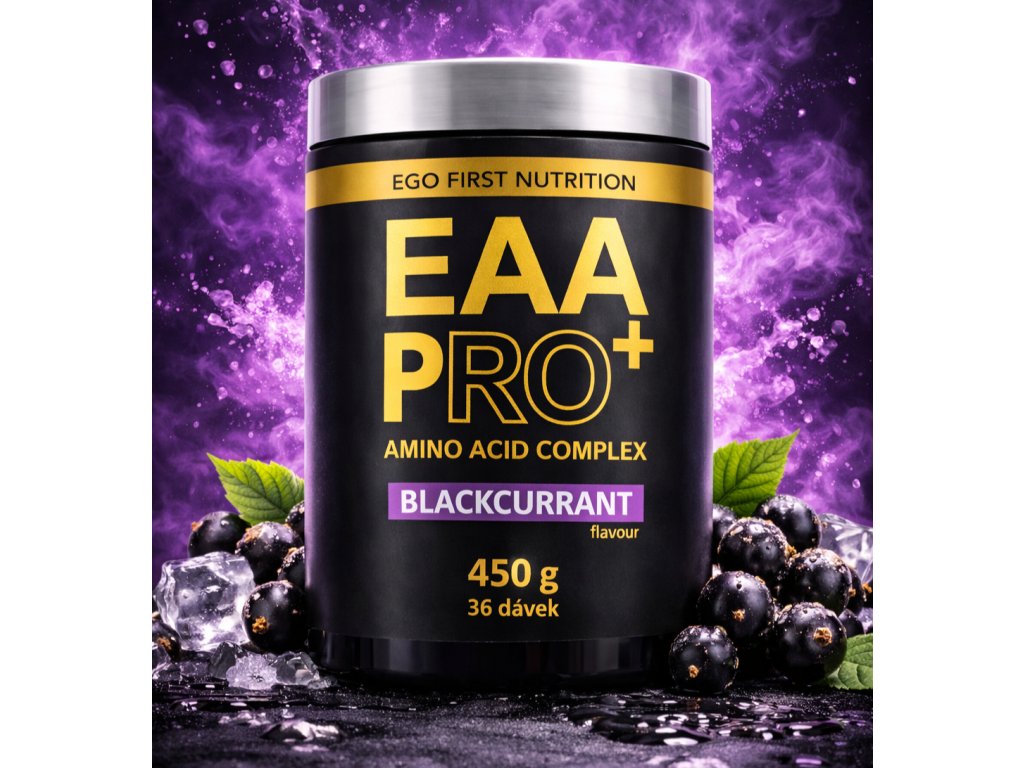 EAA PRO+ BLACKCURRANT je prémiová směs všech 9 esenciálních aminokyselin (EAA) včetně vysokého podílu BCAA (L-leucin, L-isoleucine, L-valine) obohacená o další vybrané aminokyseliny (L-Glutamin, L-Glycin a L-Taurin) pro rozšíření aminokyselinového profilu.